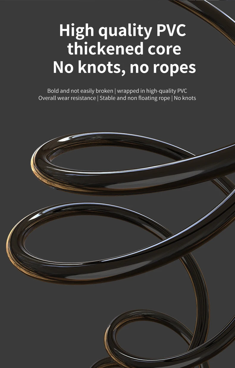 Traditional jump ropes wear out quickly, tangle easily, and disrupt your workout. This durable, non-floating rope is reinforced with high-quality PVC for superior strength and resistance, preventing breakage and knots. The result is a smooth, stable swing every time, so you can focus on your workout without interruptions.